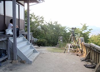 ここでも先客がお一人おられまして、カメラをセットしお堂前の階段で瞑想中の女性カメラマン。