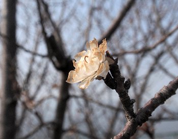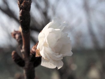 中には枯れ始めていますのもありますけど、サクラの開花まで頑張ろうと、精一杯頑張っています小ぶりの白いジュウガツザクラ…