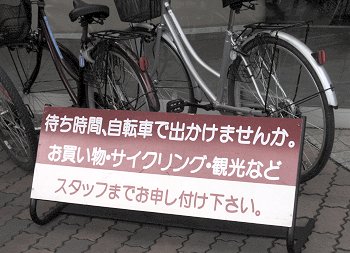 「待ち時間、自転車で出かけませんか。お買い物、サイクリング、観光など。スタッフまでお申し付けください。」と表示されました自転車がありましたけど、冷たい時期にはどぅも…