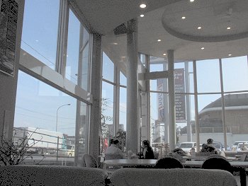 挿入の画像は、待ち時間を利用しましてブラブラと撮らせて頂きました広島トヨタ福山支店の景観です。