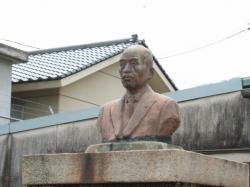 真ん中の銅像の碑文に「井上利八翁は慶応二年本村に生まれ資性剛直、明治廿四(24)年職を鐵道(てつどう)に」等とあるので、ざっと読むと「明治24 年鉄道関係の職に就き、その後実業家となり明治44年県議会議員となり、何度も当選して、県議会議長となった。大正13年に衆議院議員となり、晩年は鞆鉄道の専務取締役となった。地域社会に貢献して昭和10年に邸宅と金五千円(当時)を村に寄付し、3月に70歳でなくなった」そうです…(かなり、簡略)