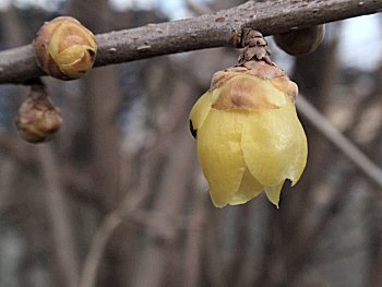 キレイな畑にお別れし水呑川の土手を歩いておりますと、次に眼に入りましたのが蝋梅です(^.-)☆