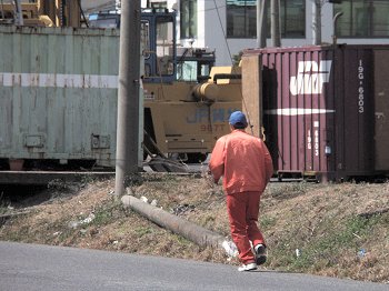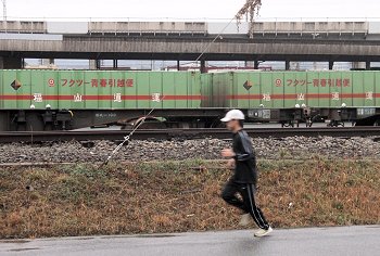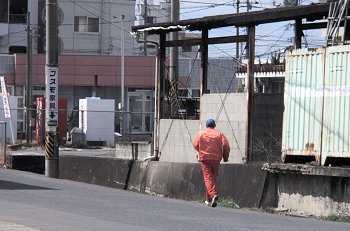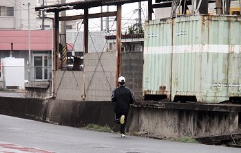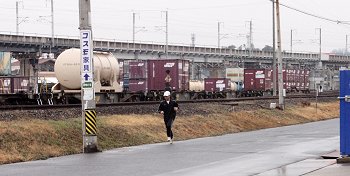 昼食を終え、いつものように職場の前でJR東福山駅貨物ヤードに眼を向けながら一服しておりますと、眼の前を昼食時のランナーsanが快調な走りで通過。