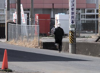 それが、先月の上旬でしたか…昼食後の所用で、この市道を岡山方向に車で走っておりましたら、このヤッケの男性とすれ違いです。