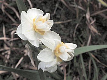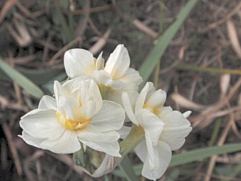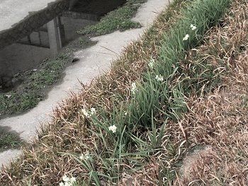 集会所裏を流れます水呑川の土手にはスイセンの花。