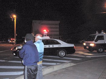 で、暫し車を駐め様子を伺いますと、パトカーは勿論のこと野次馬の皆さんも結構おられますから、う〜ん、ひょっとしたら何か事故でも発生したのかも知れない…とGONsanも野次馬の仲間入りしたい衝動に駆られてしまいましたよ(^.-)☆