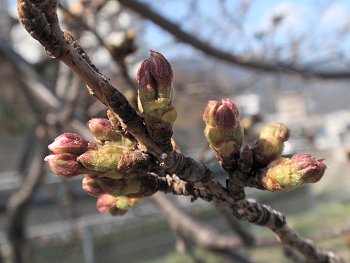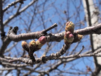 桜の木に眼をやりますと、蕾状態ではありますけど、はじけそう(^-^)