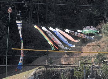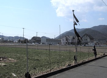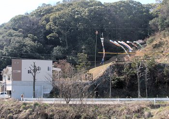 弓道場近くまでヤッて来まして山際に眼を向けましたら、おっ早くも鯉幟りが泳いでおりました(^.-)☆