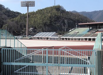多目的広場・福山市民球場を通り過ぎますと、陸上競技場外周を一周です。
