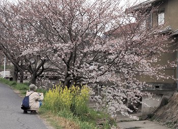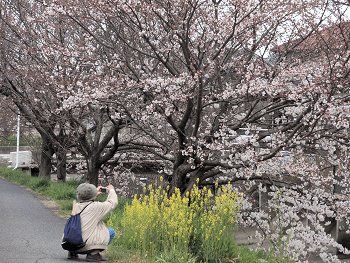 集会所の裏には水呑川が流れ、この堤防沿いに10本ばかりのサクラが存在します。
