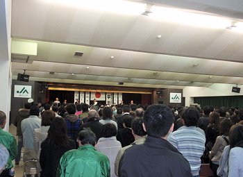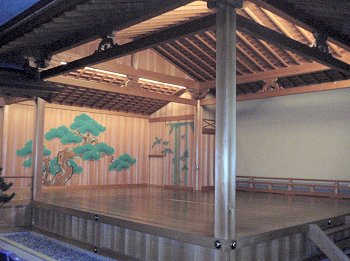 | ■2011年05月02日 GONsanには場違いの感もありますけど、少しだけ能の世界へ(^.-)☆ もぅ既に1ヶ月ばかり前の事になってしまいましたけど、先月・4/8には、お招き頂きまして少しだけ能の世界におじゃまとなりました(^.-)☆ 昨年もこの時期でしたように思うのですけど、能の世界をご案内頂きます機会に恵まれました。 この時には、15〜18名ばかりの方々とご一緒でしたけど、今回は皆様何かとご多忙でしたのかも… 出かけてみますと、なんと今回はGONsanを含めまして4名と少人数ですからタマりません(^-^; 大人数の内の1名でしたら、皆様のお話に耳を傾けていましたら宜しいのですけど、少人数ですからそぅもいきません。 とりあえず能楽堂で、舞台のさわりを少しだけ拝見。 う〜ん、やっぱりGONsanには別世界でありました(^-^; 能楽堂から階下へと降りて来ますと、今度はお食事でありました。 席に着きますと、GONsanの左隣りに同僚、そして対面にはM産婦人科の院長先生。そしてそのお隣りに新市町在住の方。 救われましたのは、この対面のお二人が仲々愉快で、よくお話しになられます方達でしたから(^-^) ■正式名称:喜多流大島能楽堂(通称:大島能楽堂) 所在地:広島県福山市光南町2−2−2 ![]() 084-923-2633 Fax084-923-8730 Email:osimano@orange.ocn.ne.jp 交通機関:JR山陽本線福山駅下車徒歩15分 バスで「商工中金」下車徒歩3分 構造:鉄筋コンクリート造り、地上3階建て 1階 稽古場、喫茶室、事務室 2階 能舞台、見所、楽屋 3階 楽屋、見所 設計:小西武彦(文化財建築技師) 施工:東京安田工務店 開場:昭和46(1971)年9月24日 能舞台構造:総檜造り 本舞台:間口 5.47m、奥行 5.47m 後座:間口 5.47m、奥行 2.55m 地謡座:幅 1.20m、奥行 5.47m 橋掛り:幅 2.0m、長さ 6.60m 舞台との角度 100° 屋根:入母屋式檜皮葺き。 窓を障子にして自然光を取り入れている 鏡板揮毫:園木冬扇(福山在住) 見所:総定員 395名。固定席 265席、 畳席 23席、補助椅子席 107席 ・大正3年、2代目大島寿太郎(明治4〜昭和4年)が、福山市新馬場町(霞町)に建てた大島能舞台は、昭和20年の戦災で焼失。 ・昭和23年、3代目・大島久見が戦後復興に努力し、光南町に能舞台を建設、能楽の普及、啓蒙に勤めた。 ・昭和33年より、年4回、解説付きの定例鑑賞能(能楽教室)を全国に先駆けて開催し、中四国地方はもとより各地からのファンの期待に応えている。 ・昭和46年、老朽化した能舞台を建てかえ、関西以西の西日本では唯一、全国的にもめずらしい個人での本格的な能楽堂(約300席 1階稽古場、2・3階能楽堂)を建設。平成9年、座席などを改修。 ・2003年3月、「福山喜多流能楽堂」から「喜多流大島能楽堂」に改名。 ・2003年9月、1階部分を改装。展示サロン室「樫木端」を併設する。 …と、こんな喜多流大島能楽堂なんですけど、昨年もこの絵日記に綴りましたような(^-^) とにかくGONsanに取りましては空の上の世界ですから、何かと居心地の悪さも生じますが、対面のお二人の豪快な明るさには、実に楽しいひとときとなりました(^.-)☆ このお二方、なんでも喜多流大島能楽堂のお弟子さんのご様子で、謡いもご披露頂きましたけど、GONsanの面前ですから、お弟子さんと言えども大変迫力がありましたネ(^-^)//" |
