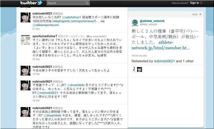 日時は分かりましたから、では、何で確認しようか…と暫し思案。それで浮かんで来ましたのが朝原選手の“twitter”(^.-)☆