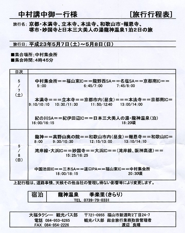 GW明けの5/7(土)〜5/8(日)は、町内の中村講中の皆様と和歌山方面へのお寺巡りでありました(^.-)☆