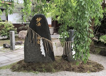 境内墓地には山中鹿之介の墓、本堂脇には徳川家康二男秀康の正室、蓮乗院の石廟がある。