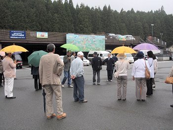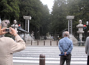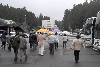 小雨がぱらつく中を“中の橋会館”前の駐車場に到着です。ここから奥の院弘法大師御廟には徒歩ですけど、はてさて、傘を持参しようか…どうしようか…と思案の皆様。