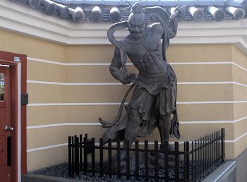 現住職は51世岡部日聡貫首(大阪市海宝寺より晋山)。堺法縁縁頭寺。◆霊木・大蘇鉄境内の大蘇鉄(そてつ)は国指定の天然記念物(1924年12月9日指定)である。樹齢1,100年余と云う。織田信長は、その権力を以って、天正7年、この蘇鉄を安土城に移植させた。しかし、毎夜「堺妙國寺に帰ろう」と怪しげな声に、信長は激怒し士卒に命じ蘇鉄を切りつけたところ、鮮血切口より流れ悶絶の様は恰も大蛇の如く、さしもの信長も怖れ即座に妙國寺に返したと言う。枯れ死寸前の蘇鉄を、哀れにおもわれた日b上人は法華経一千部を誦したところ、夢枕に、人面蛇身神が現れ「報恩のため、女には産みの苦しみを和らげ、苦難には災厄を逃れ、乏しき者には福寿を授ける」と三つの誓願をした。御堂を建て、守護神宇賀徳正竜神として祀られています。◆出来事天正10年(1582年)の本能寺の変の際、堺を訪れていた徳川家康は妙國寺に宿泊していたが、変を聞き、妙國寺僧、油屋親子の助けを得て難を逃れたと伝える。◇堺事件慶応4年2月15日、フランス軍艦より水兵100人が上陸し、市内を闊歩し婦女子を追回すなど傍若無人の振舞いに、堺警備隊の土佐藩士が応対したが、双方言葉が通じないため両者銃撃応酬の末、フランス兵13名の死傷者を出すにいたり国際問題となり、本事件はフランスに賠償金を払うと共に、箕浦猪之吉、西村左平次等土佐藩士20名は切腹を命じられた。同2月23日、妙國寺において日仏立会人の面前で堂々と割腹自刃しました。12人目にかかりフランスの立会検視人もその凄絶の様に見るに忍びがたく切腹は中止となり、9名は土佐へ流刑となったのです。…と、こんな歴史のあります妙国寺。何度も焼失の目に遭い昔の面影は薄れてしまっているのでしょうけど、色んな歴史的事件の舞台となりました妙国寺。