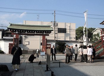 報恩寺での参詣を終えますと、また1時間ばかりバスで移動し、いよいよ今回のお寺参りの最後の訪問地「妙国寺」へと向かいます。■妙国寺妙国寺(みょうこくじ)は、大阪府堺市堺区にある日蓮宗の本山(由緒寺院)。山号は広普山(こうふさん)。幕末に起こった堺事件ゆかりの寺として知られる。開基は三好之康(三好義賢・実休)。開山は日b。妙國寺とも書く。◆歴史正親天皇の永禄5年(1562年)に、当時四国の阿波、讃岐より兵を起こして、畿内を支配していた三好家四兄弟の一人である三好豊前守之康(義賢実休)公が、大蘇鉄を含む東西三丁南北五丁の土地を、開山である日b上人に寄進され、日b上人の父である堺の豪商であった油屋伊達常言、兄の常祐が協力して此処に常塔伽藍を建立寄進して、広普山妙國寺と称し、皇室より勅願所と定められました。寺名は日祝の号である「妙國院」による。 元亀2年(1571年)に本堂竣工。天正11年(1583年)までに広大な寺地に14の坊、南北の学問所などを備えた伽藍が円成する。 元和元年(1615年)の大坂夏の陣、大阪落城に際し豊臣の将大野道犬は、徳川家康妙國寺にありと聞き、乱入諸堂に火を放ち全山灰陣燼と化す。その後、寛永5年(1628)本堂再建、続いて祖師堂、三重塔、客殿、方丈、勅使門、鐘楼、経蔵、書院、徳正殿、その他支院等旧観を再現した。しかし、第2次大戦の末、昭和20年7月、堺大空襲による戦火で再び大半を焼失した。昭和48年、本堂等再建し現在に至る。