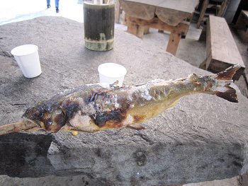 (左)鮎500円 (右)ホテル祖谷温泉より
