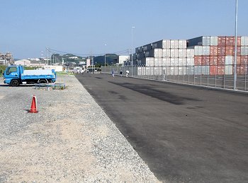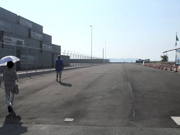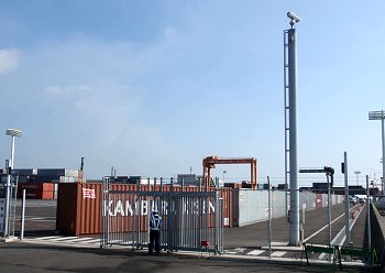 そのスグ近くまで行きたいところですけど、コンテナターミナル入り口にはガードマンsanがシッカリ待機。はてさてどぅしたものか…と思案のあげく「関係者の者です(^-^)/」と声を掛けまして擦り抜けようと試みたのではありますが、「こらこら、どこが関係者なのじゃ」と言わんばかりに笑顔のガードマンsan。あっさり阻止されてしまいましたよ(^-^;
