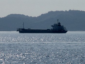 で、せめて日本丸の優美な姿を画像に納めよう…と、7/17の早朝に出かけて撮りましたのがこれらの画像なんであります(^.-)☆福山港国際コンテナターミナル近くの路上に車を駐めテクテクと歩行。
