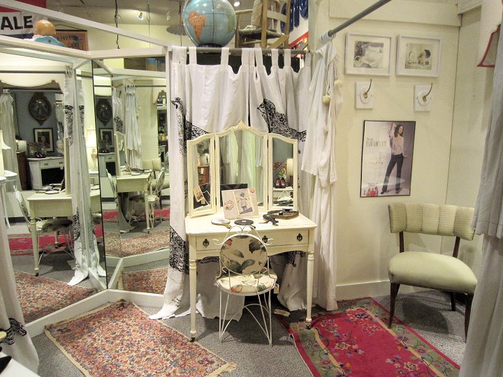 あまり説明ないですけど、ドレッサーやカーテンが写っているのは試着室のようです。とても素敵だったので写真に収めました。 二度行きましたが、いつも看板犬?がいます。大人しくて床に寝てたり、ソファーに寝てたりして癒されます(^.-)☆