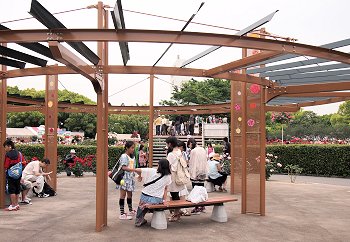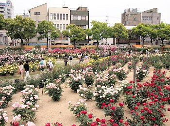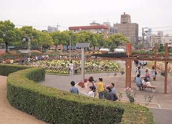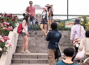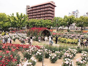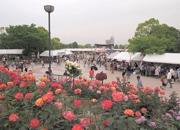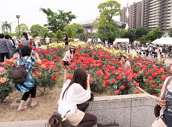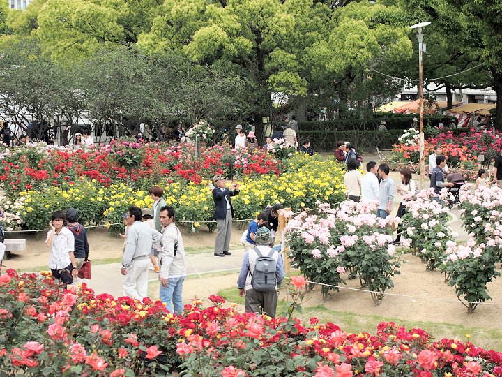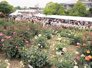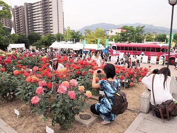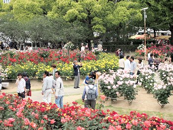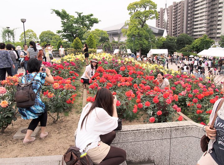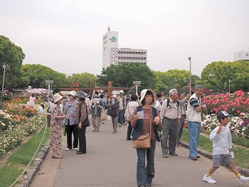 思ったほどの人出ではありませんでしたけど、バラ公園内はさすがに賑やか。