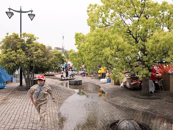 この方達の様子を横目に中央公園を横断し、道三川に沿って最短距離をバラ公園に(^-^)