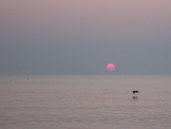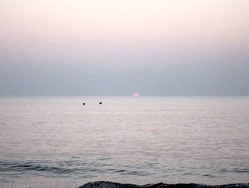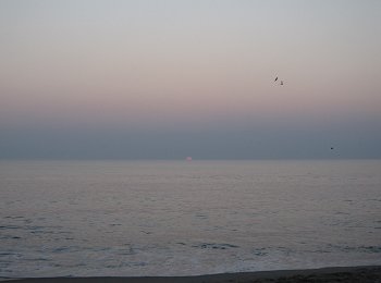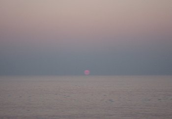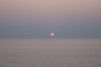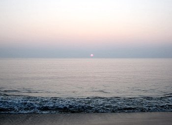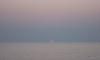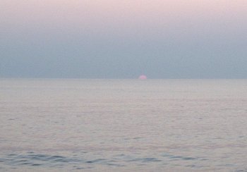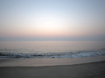 朝、起きるとちょうど日の出前だったのでビーチへ。水平線から太陽が昇ってくるのを初めてみました。