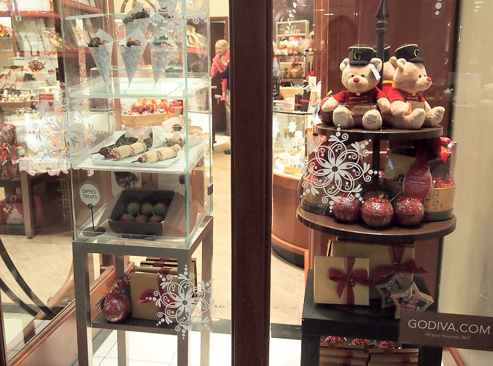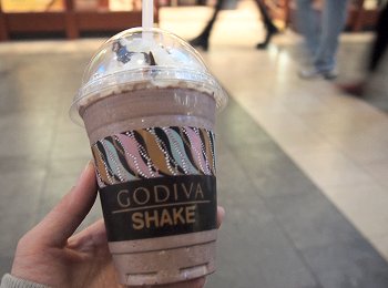 ゴディバもクリスマス仕様。このシェイクがとっても美味しいです。高いですが(6ドル)。