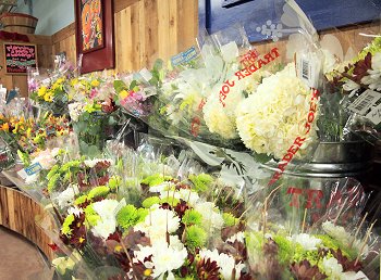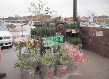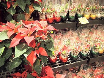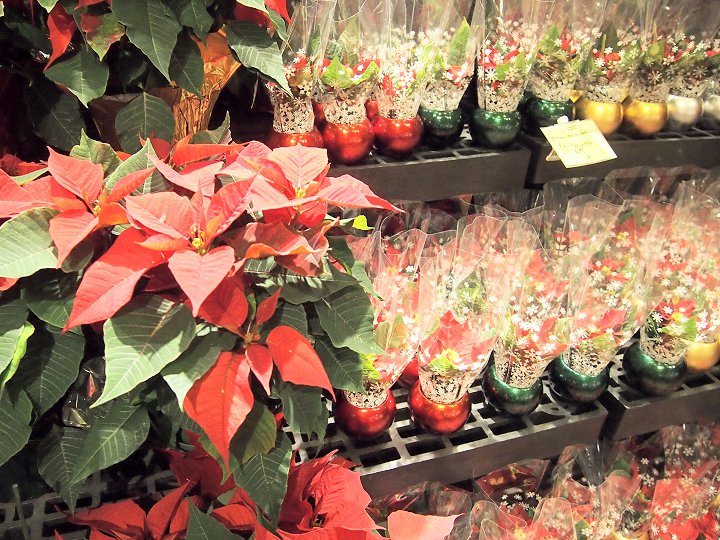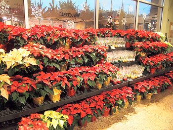 ポインセチア大量。お花屋さんじゃないですよ。ホールフーズ(スーパー)の入り口です。