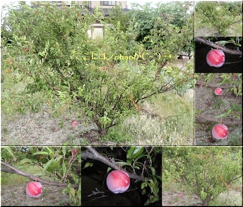 甘酸っぱくて少々固くて…父が存命でしたら、美味しそうに食べました事でしょう…こんな“すもも”を初めて実を付けました記念に数枚画像に撮っておりますと、少し離れた梅の樹の下辺りで「何しているのだろう?」とでも言いたそうにゴンchanがジッと見つめておりました(^-^)//