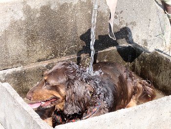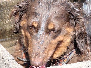 “早く水道の蛇口を捻れ!!”とでも言っていますのでしょうねぇ〜後はご覧の画像の通り、体をあっちに向けコッチに向けで実に嬉しそう(^.-)☆