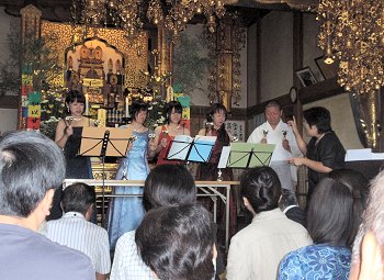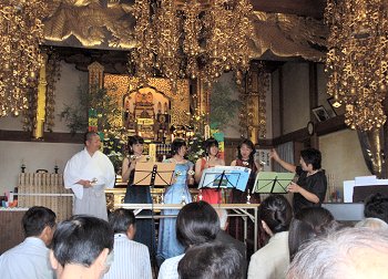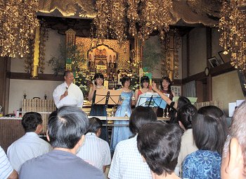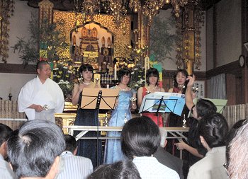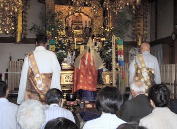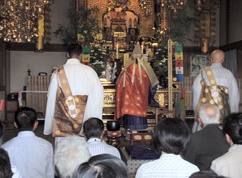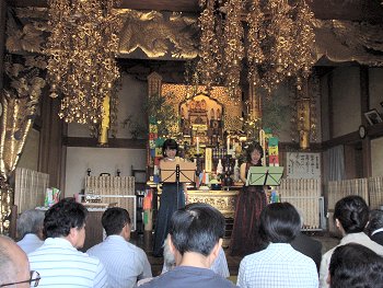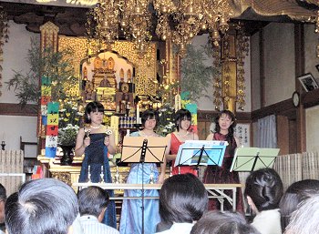 それでも早足で歩けば充分間に合うのですけど、二人でペチャクチャ喋りながらのユッタリとした歩行ですから、山門の手前で既に始まろうとしておりました(^-^)到着し本堂に入りますと、かつかつセーフ(^.-)☆