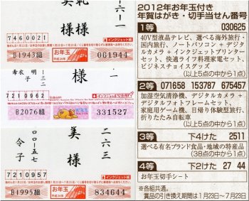 1/22(日)がお年玉付き年賀ハガキ・切手の抽選日でしたから、今夜、早速当選番号をチェック(^.-)☆
