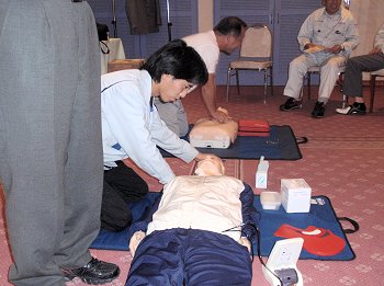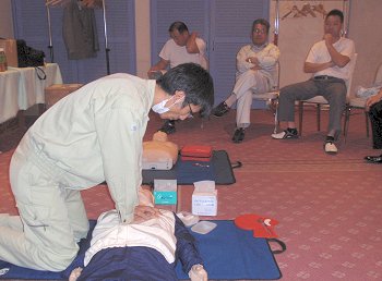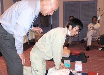 AEDが電気ショックの必要なしと判断しても心停止状態が続いていたり、呼吸がなければ人工呼吸あるいは心臓マッサージを救急車が到着するまで行います。…と、こんな内容で毎回受講。何回かの受講でAEDの操作は熟知していますGONsanなんではありますが、幸か不幸か今まで一度も救命の実務で使用します機会は訪れません。