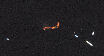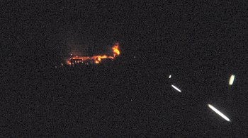 そして、“嫁さんの帰るのが今夜は遅いなぁ〜”とベランダから外を眺めますと、我が家の南方・福山商業高校方面に炎が上がっていますから『えっ、火災!?』と、一瞬ビックリ(^-^;