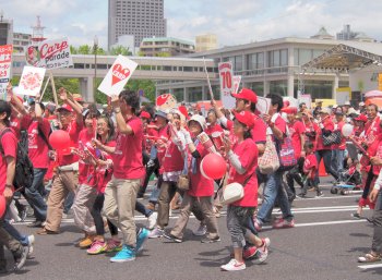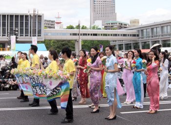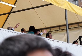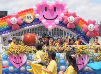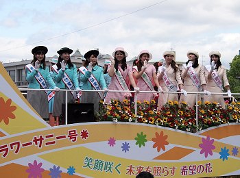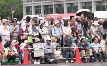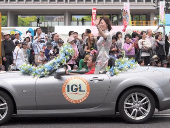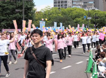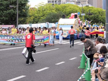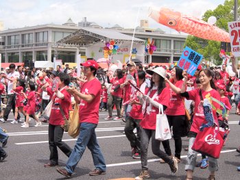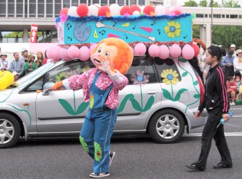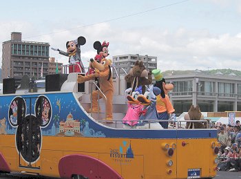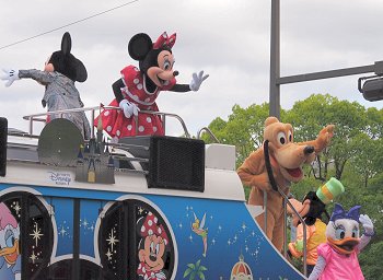 「こっち向いて!!」元気をはじけさせるディズニーの仲間達に大勢がカメラを向けた(^_^)v