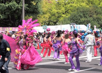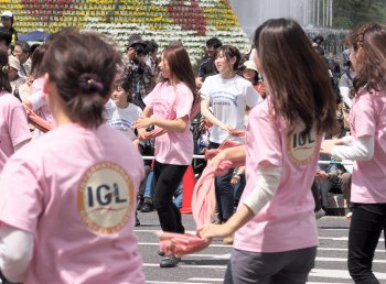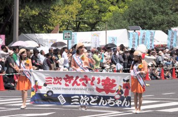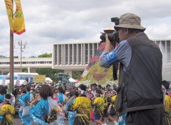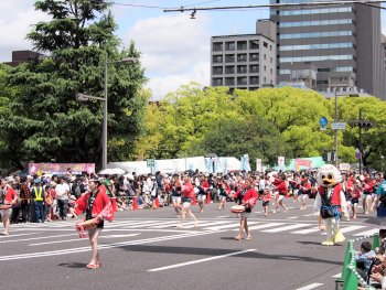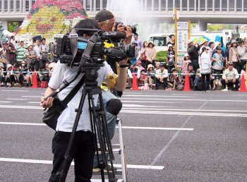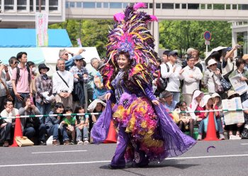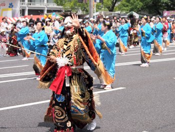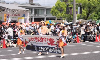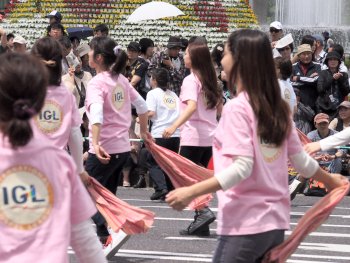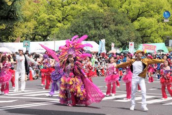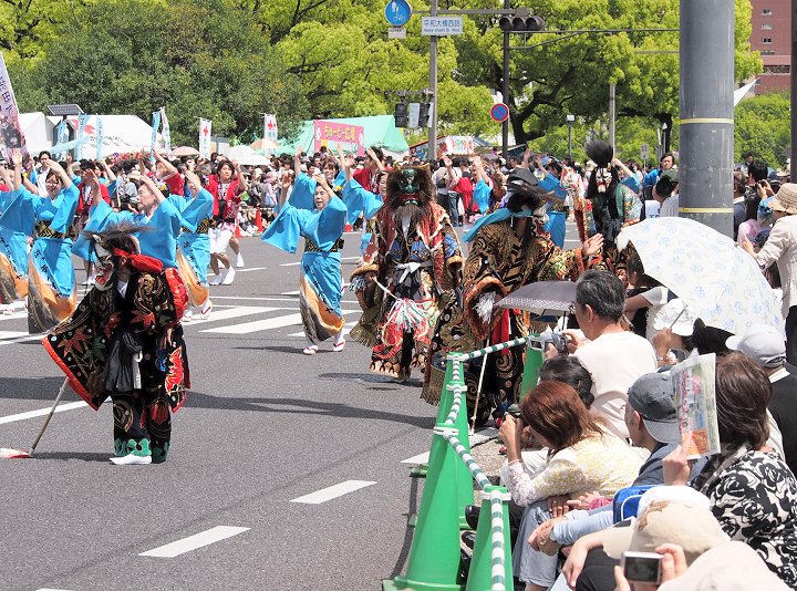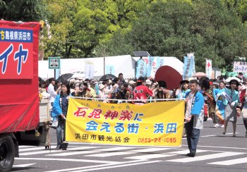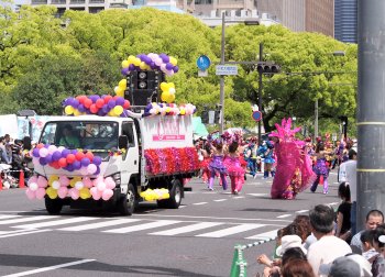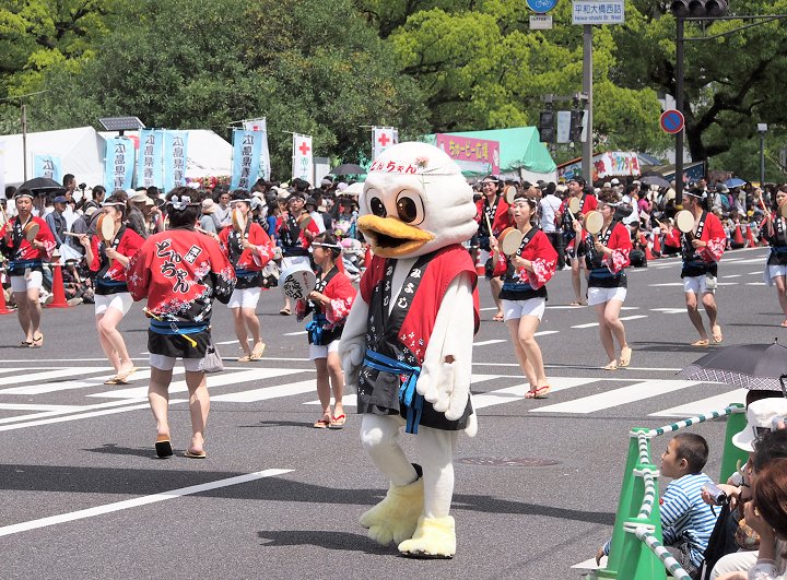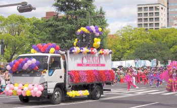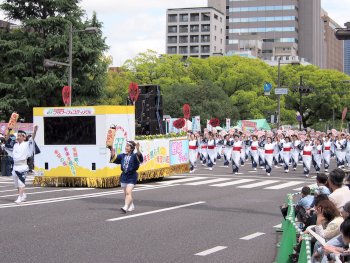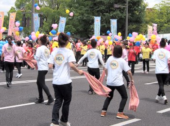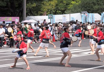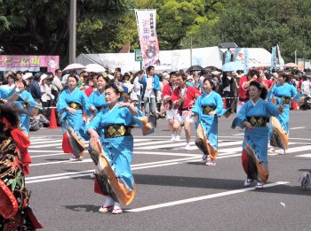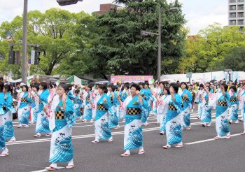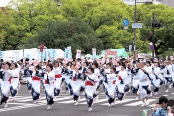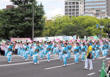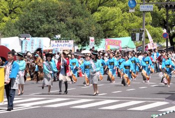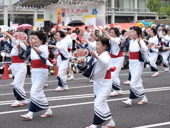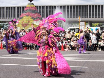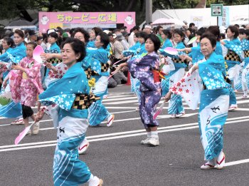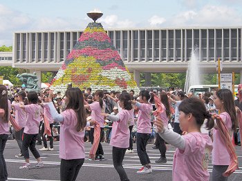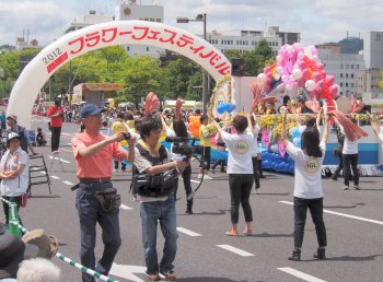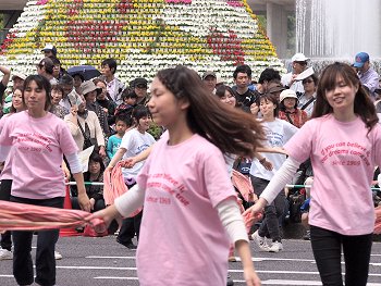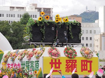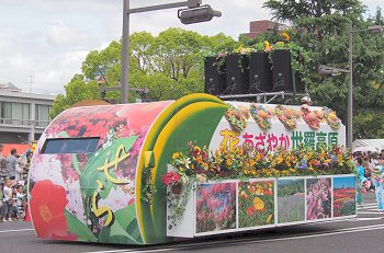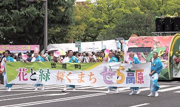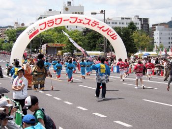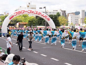 花の栽培が盛んな世羅町の住民グループ「せら町・歌と踊りを愛する会」の約170人が、FFに8年連続で出場した。