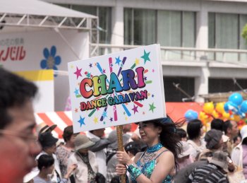 「せらまち音頭」に合わせて花の高原の魅力を発信する会員。