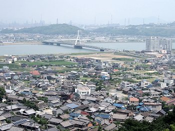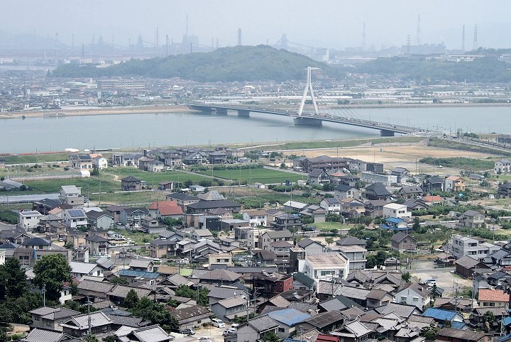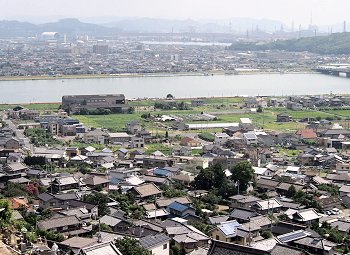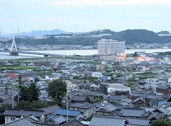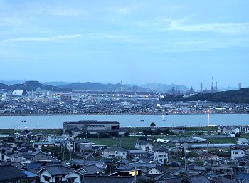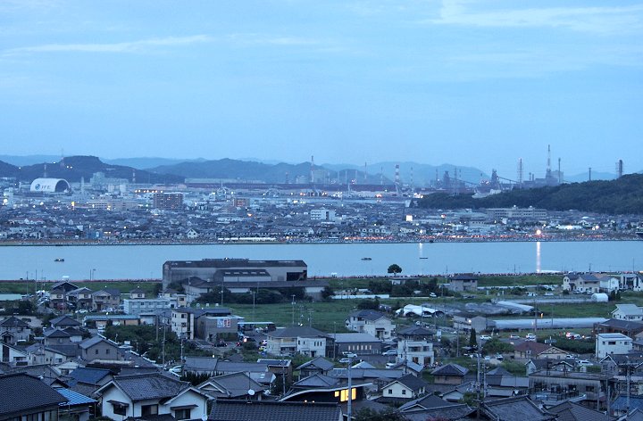 で、この日に備えて蚊取り線香も準備。そして、当日は、カメラは勿論のことイス・三脚・飲物・蚊取り線香…と準備万端で、まだ早いかなぁ〜と想いながらもP.M.6:40に我が家を出まして、いざお寺へと出発となりました(^-^)10分も経ませんうちにお寺には到着で、妙顕寺境内からとりあえず芦田川方向を眺望し、とりあえず2枚パチリ(^_^)v