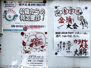この日の夜は水呑学区の盆踊り大会の開催でしたが、それを知らせます公民館掲示板のポスターをまずはパチリ(^-^)暑い中でのお寺参りですから、ゴンchanは早々とバテ気味状態。こんな状態になりますのは当然のごとく予測出来ますのですけど、それでも私達に付いて来たがりますから、ゴンchanには我慢して貰わなくては(^-^)