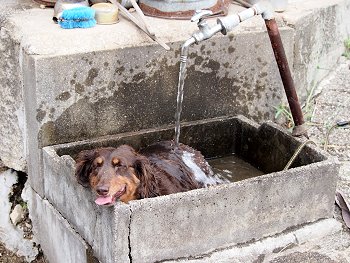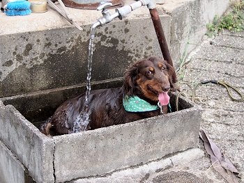 暑さも収まり満足そうな顔ですけど、これで水道の蛇口を自分で閉めてくれれば言う事無しですけど、そぅも行きませんネ(^-^)//"