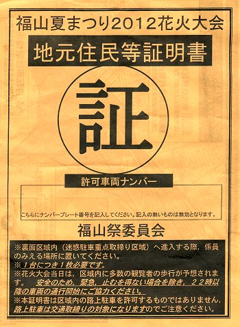 これは、花火大会当日の進入禁止区域に暮らします方々の言わば「通行許可証」みたいなモノなんです。