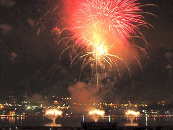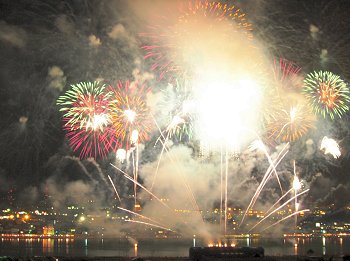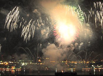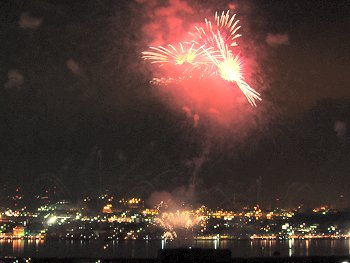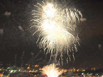 振り向きますと、同じ町内会の方でしたから、「今まで毎年、この境内から見物ですか?」と声を掛けますと「うん、毎年、墓参りの後でここから見物してる。今年はここから見物する人が少ないけど…」との事でありました。