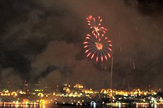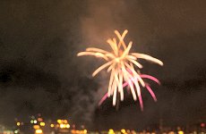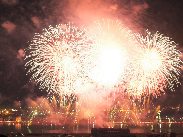 何年か前までですとGONsanも職場の皆様と「二上(にあが)りおどり大会」に参加しておりましたけど、今では見物させて頂きます側に廻ってしまいましたねぇ(^-^)その見物も、もぅ3年ばかり出かけておりませんけど(^-^;「2012福山夏まつり」も、それなりに盛大に開催されましたようですけど、この様子は中国新聞sanがこんな記事で掲載されておりました。■二上りおどりで夏まつり開幕--- 2012/08/14 中国新聞 ---福山市の福山夏まつり(福山祭委員会主催)が13日、二上(にあが)りおどり大会で開幕した。町内会や企業、大学など30団体約2千人が練り歩いた。まつりは15日まで。おどり会場は久松通りと宮通り、きたはま通り。いずれも午後6時40分に踊りが始まった。浴衣やそろいの法被姿で手には竹片を持って打ち鳴らし、テンポよく足を運んだ。ばらのまち福山のイメージキャラクター「ローラ」が備後絣(がすり)を着て初めて参加。カスタネットを持って踊りの列に加わった。また、市中央公園で開会式があり、連続参加数が40回目の福山青年会議所と、20回目の市古典芸能保存会に羽田皓市長が表彰状を贈った。14日はよさこい踊り「いろは丸YOSAKOI」、15日には約1万発を打ち上げる「あしだ川花火大会」がある。■夏まつりによさこい踊り登場--- 2012/08/15 中国新聞 ---福山市の福山夏まつり(福山祭委員会主催)は2日目の14日午後5時から、市中心部でよさこい踊り「いろは丸YOSAKOI」があった。市内外の11団体約350人が参加した。市中央公園や宮通り、きたはま通りなど5カ所が会場。そろいの衣装で思い思いにアレンジした踊りが決まると、大きな拍手が起こった。最後に中央公園で総踊りがあった。最終日の15日午後7時半から、同市の芦田川大橋の上流で花火大会がある。…と、こんな記事で(^-^)今回も出かけておりませんGONsanですから、この様子は画像でお伝え出来ませんけど、夏まつり最終日の芦田川花火大会の様子を画像でご案内させて頂こうと思います(^-^)//"