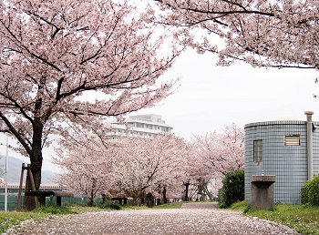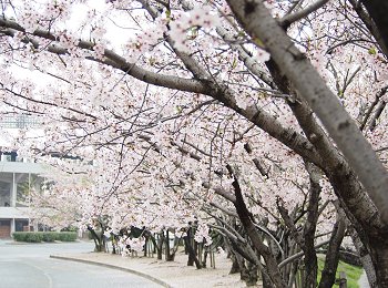 プール・テニスコート横のサクラは既に散り始めているのかも…と思っておりましたら、まだほぼ満開状態でラッキー(^_^)v