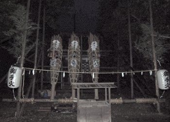 毎年同様なのでしょうけど、午後6時に拝殿内5張の太鼓が少年等によって打ち鳴らされ、境内に轟き渡ります。そして、午後8時ごろ宮司以下神前に参進して祭儀が執り行われます。