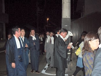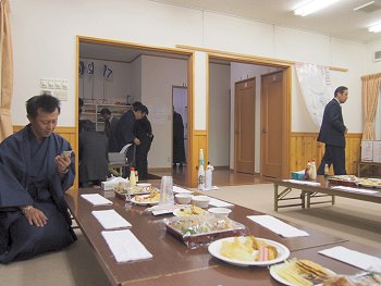 背広姿でも構いませんから、ここ近年は背広姿の方も何人かおられます。集会所ではアルコールで元気付けで暫し談笑。そぅしておりますと子供会の皆様も一人、二人と集まってこられます。