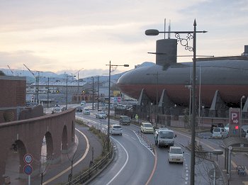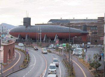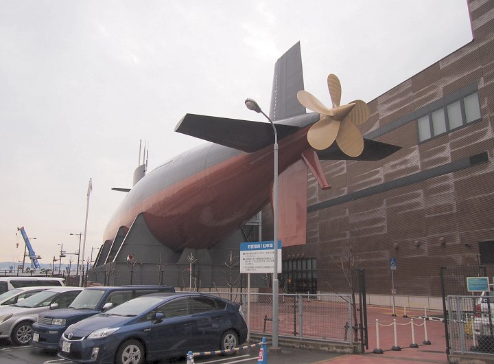 「大和ミュージアム」館内の展示物を一通り一巡後は、外に出まして退役潜水艦が展示してあります「てつのくじら館」へと移動です。