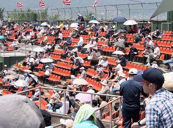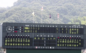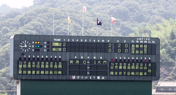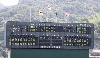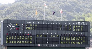 地元校の登場ですから、それなりに観客もおられます(^-^)事あるごとに足を運びます福山市民球場なんですけど、ローカルな球場であります。が、プロ野球の試合開催時には仲々話題となります試合も過去にはありましたネ…◆平成10年8月9日1998年(平成10年)8月9日に開催されたセ・リーグ公式戦・広島対横浜ベイスターズ22回戦は序盤から打ち合いとなり、8回終了時点でスコアは6-6。しかし終盤以降は双方決め手を欠いて膠着状態のまま延長となったが、15回に横浜が菊地原毅の暴投で勝ち越すと、連打に守乱も絡んで一挙8点を挙げて圧倒。結局横浜が14-6で大勝した。